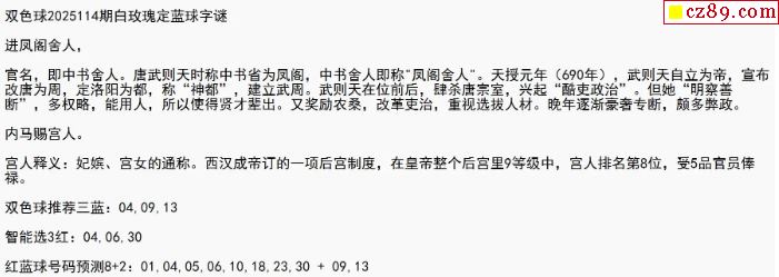 首页 > 双色球预测 > 25年福彩双色球114期 白玫瑰定蓝球字谜
